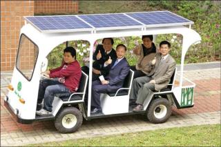 〔自由時報記者鄭旭凱/雲林報導〕雲林科技大學將利用太陽能電動車在學校送發公文!學校十七日發表最新研發的第一代太陽能電動遊園車,只要在車頂加裝兩片太陽能板,充電八小時大約可開七十公里。